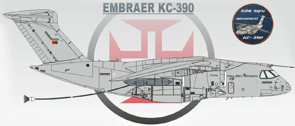 Chegou a Portugal, escoltado por dois caças F-16AM Fighting Falcon da FAP, o primeiro avião de transporte e reabastecimento aéreo Embraer EMB-390 Millennium (C-390 de transporte e KC-390 de reabastecimento aéreo nas nomenclaturas da FAB-Força Aérea Brasileira).